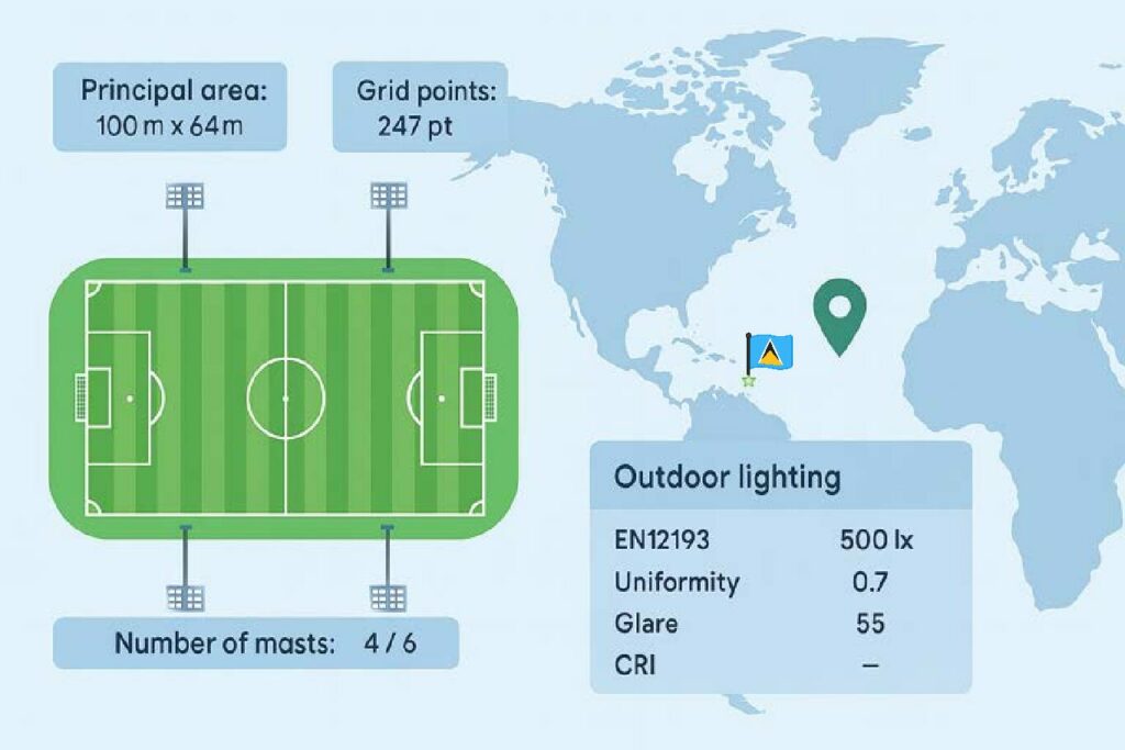 🏟️ Construction de 8 stades de football à Sainte-Lucie : NOVETI sélectionnée pour la fourniture des éclairages LED